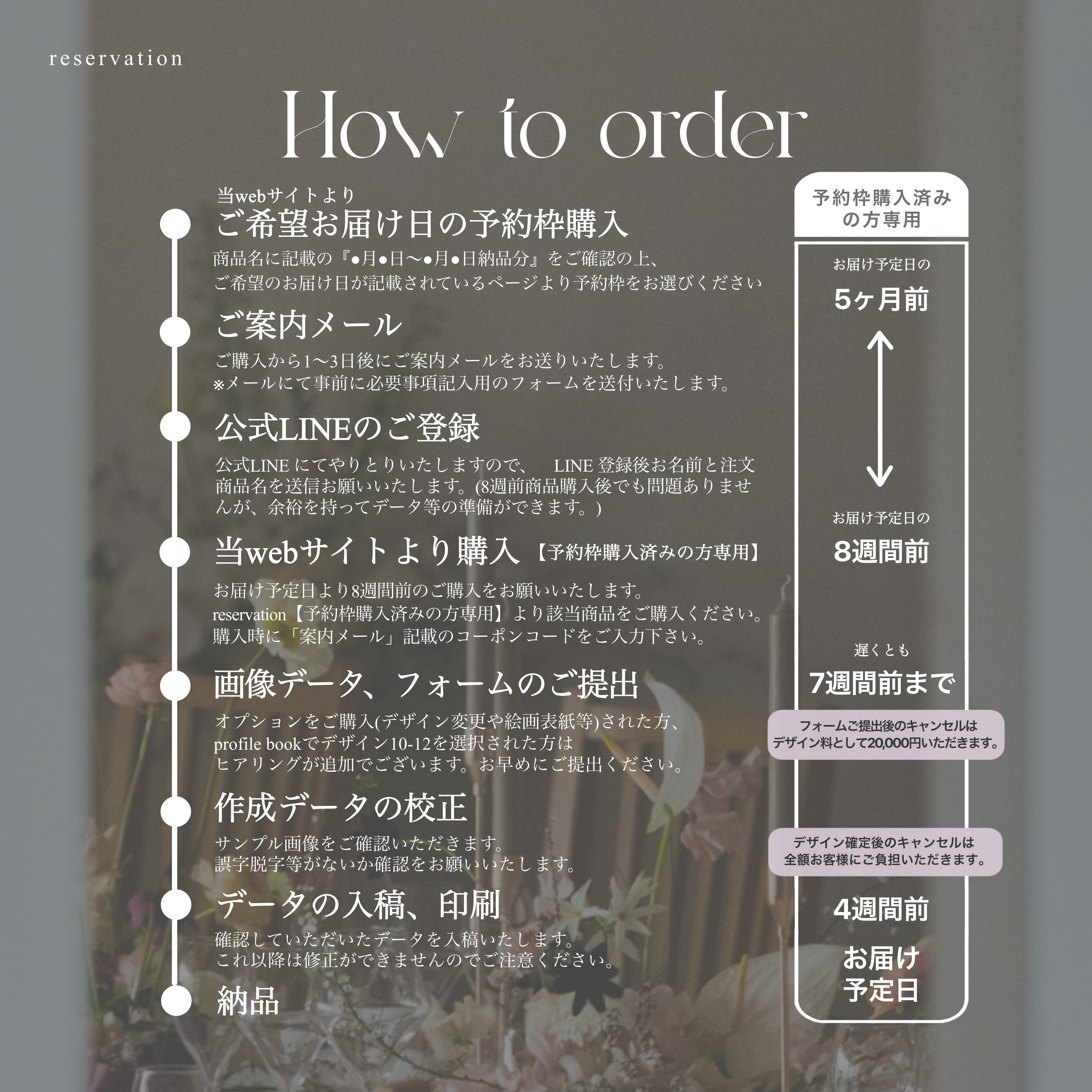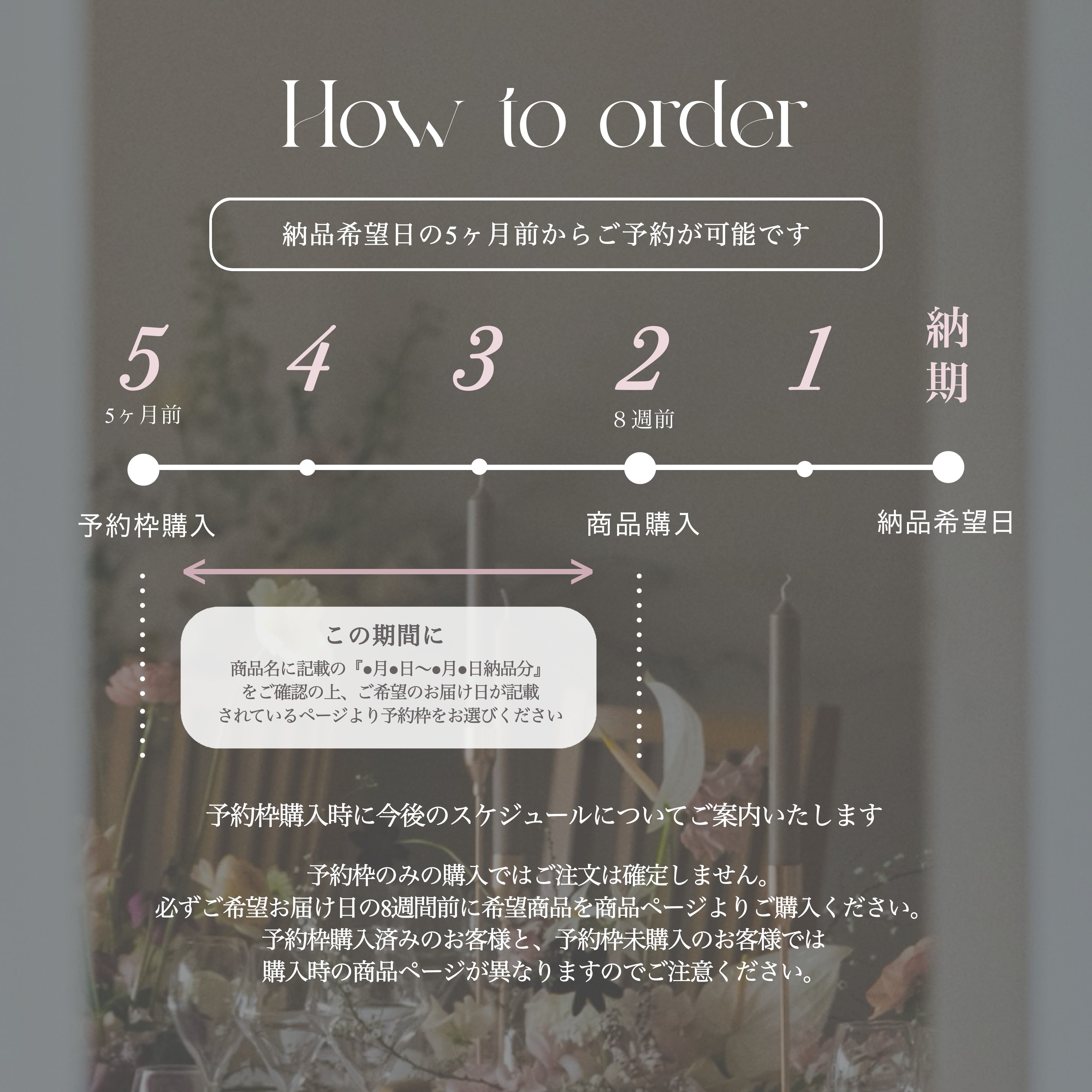 ・予約枠のみの購入ではご注文は確定しません。必ずご希望お届け日の8週間前に希望商品を商品ページよりご購入ください。